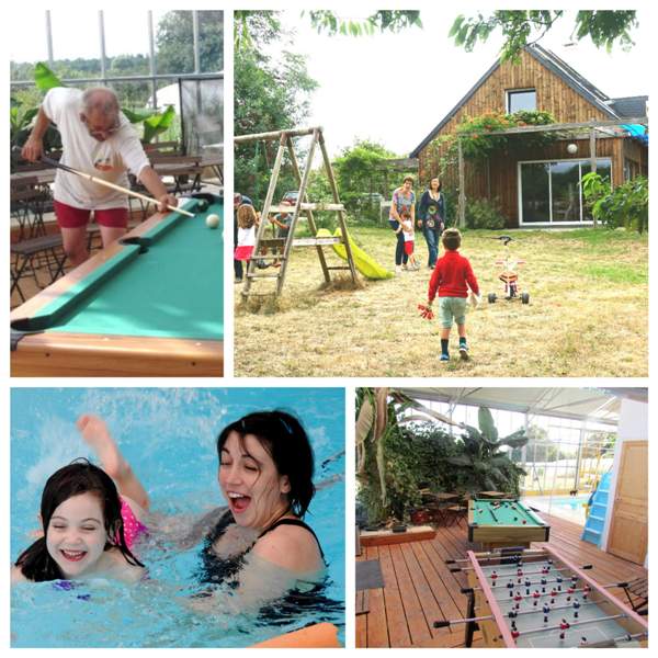 Calme et bien être dans ce Gite de groupe d'une 15aines de personnes. Ce Gite est situé en pleine campagne avec salle de jeu et piscine dont l'eau est chauffée à 28 ° dans une verrière arborée. 6 chambres avec 6 grands lits et 6 lits de 90.